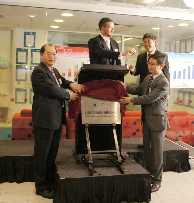 王庆林处长和悉尼科技大学刘勉主任共同为我校第一个海外联合研究中心揭牌