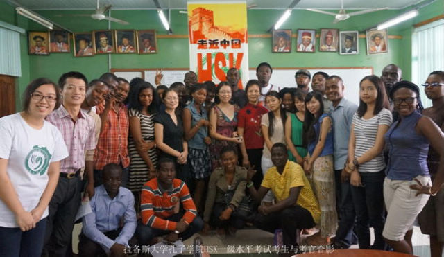 拉各斯大学第二届HSK考试分为一级和二级水平考试,分别于4月20日上午9点和下午1点进行。在拉各斯大学孔子学院中方院长姜丽蓉教授的带领下,全体任课教师担任了此次考试的考官。共有来自尼日利亚的大学、政府部门、公司等机构的36名考生参加考试。尼日利亚考生们表现出严谨的学习态度。考试开始前两个多小时,就有学生来到考场外候考。考试结束后,考生们兴奋地要求与担任考官的汉语教师合影留念。