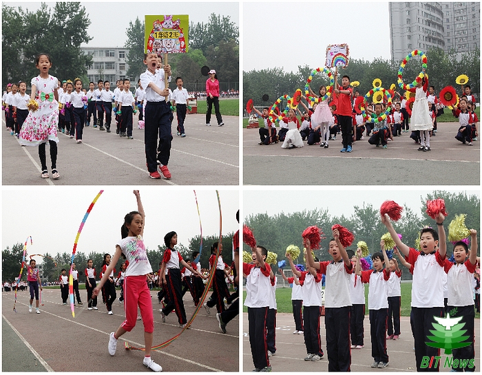 开幕式中,全校各运动员代表队着装整洁、步伐整齐、口号响亮、精神饱满、各具特色,展现了附小学生的良好精神风貌。