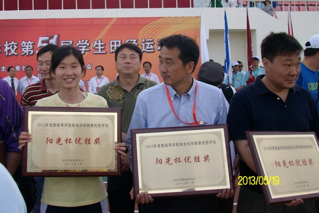 同时还荣获首都高等学校阳光体育联赛阳光杯优胜奖。(左一为我校运动员张珊珊)