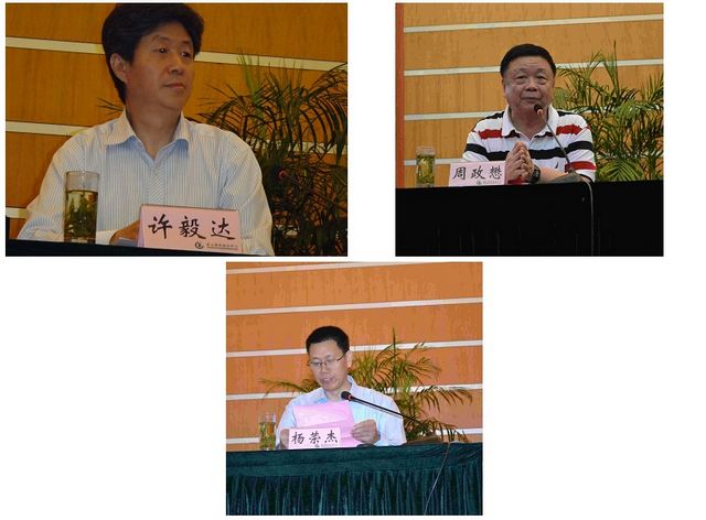 本届年会开幕式由中国阻燃学会秘书长周政懋教授(上右),和阻燃材料研究国家专业实验室主任杨荣杰教授(下)主持,首先由杨荣杰教授致开幕辞,代表会议主办单位,感谢各位领导、各位专家、各位代表对本次会议的关心和支持;兵工学会秘书长许毅达(上左),讲话,对阻燃行业及阻燃界同仁寄予厚望;学会秘书长周政懋教授介绍了2012-2013年度学会的工作情况,并对各位代表的到会表示热烈欢迎。