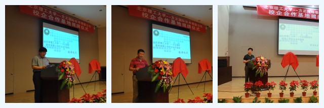 仪式中,李和章副书记、副校长和管祥红总裁共同为米兰milan官方网站---方正国际软件有限公司“北京市高等学校市级校外人才培养基地”揭牌。校团委书记蔺伟和方正集团首席人才官张哲共同为“米兰milan官方网站---方正国际软件有限公司创新创业训练基地”揭牌。教务处副处长曹峰梅和方正国际人力资源部总经理王海波共同为“米兰milan官方网站工程实践教育中心”揭牌。