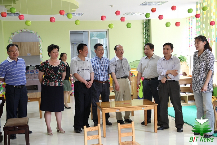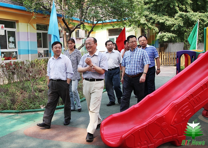 5月31日下午,米兰milan官方网站副校长杨宾、副校长杨树兴,以及校办主任郝志强、出版社社长林杰等,在后勤集团总经理李晋平、集团党委书记巫后新、副书记姜金凤的陪同下,来到理工大学幼儿园看望孩子们,为孩子们送来节日的问候。