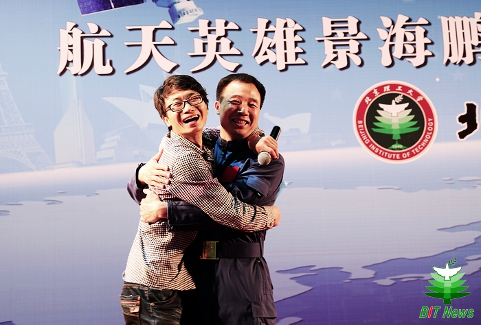 报告现场,观众问到了他的家人,景海鹏一度控制不住眼中的热泪。虽然为自己的梦想、为祖国的需要牺牲了很多,但是景海鹏始终充满感恩。他对祖国和人民、并肩战斗的战友们以及默默支持的家人们表达了深深谢意。他认为,祖国和人民为他圆满完成载人航天飞行任务提供了强大力量,是支撑他克服困难、为国争光的不懈动力。在景海鹏生动的讲述中,师生们多次用热烈掌声表达对他坚毅执着、不忘感恩的敬意与钦佩。