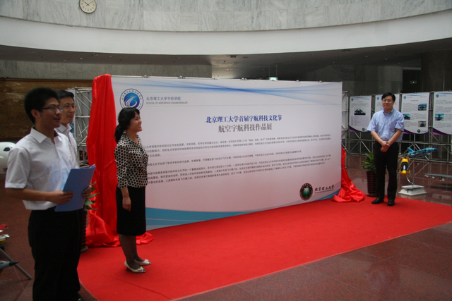 6月3日上午,首届宇航科技文化节开幕式在中教大厅举行,中国宇航学会科普处处长钟玲和校团委书记蔺伟共同为活动揭幕,并与到场师生一同参观了航空航天科技作品展。该展览分别于6月3日、4日和6月6日至9日在中关村校区中教大厅和良乡校区徐特立图书馆大厅展出。