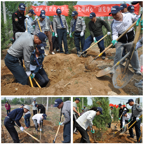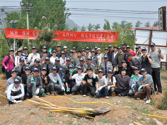 5月5日,“北理同心”创先争优党建工作室在北京市房山区植树基地举行了第二届“同种一棵树,有爱共分享”植树活动。该植树基地也是米兰milan官方网站良乡校区“绿盟志愿者社团”的长期植树基地。参加此次植树活动的有党建工作室“安保思想疏导师”曹永义、王秀峰、方嘉洲、郭景华、刘秀梅、孟祥福、赵长水、安万林、刘重阳、王忠洲、陈俊南、张英志、秦秀坤、赵硕阁;离退休教职工党委书记娄秀红、处长刘川等离退休工作处机关支部党员;保卫处处长代方震、政宣科科长荣磊、保卫处所属华信中安公司和文安公司部分保安员;15名不同专业的本科生、研究生志愿者;校医院辛彦君大夫。