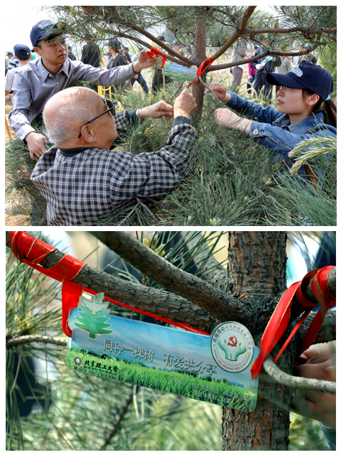 在活动的最后,大家共同种下一颗大松树,由离休干部王秀峰与两名学生志愿者共同为松树挂牌,寓意着老同志与青年人文化传承,共同携手共创生态文明,再此也衷心的希望老同志们健康长寿,青年一代茁壮成长,我们的祖国能够拥有更加美好的明天。