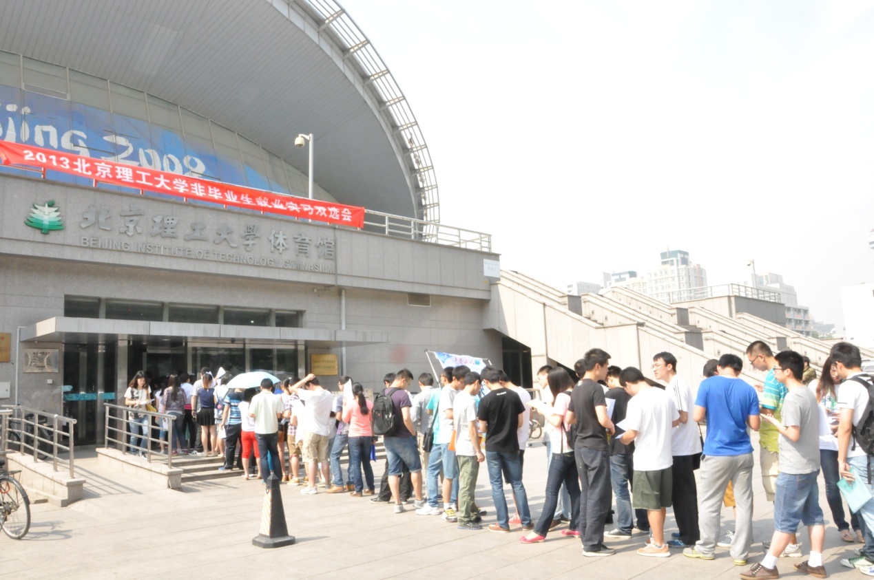 “青春试航”非毕业生就业见习双选会旨在为即将成为毕业生的本科生、硕士生和博士生提供就业见习机会,帮助同学了解社会、实践社会,并介绍企业先进的文化理念,协助用人单位在激烈的人才争夺中抢占先机,缩短毕业生就业适应期,充实人才储备。这项活动自开办以来就受到用人单位和同学们的喜爱和好评,吸引了很多社会媒体的关注。本次双选会现场非常火爆,同学们很早就在体育馆入口排起长队等候入场。