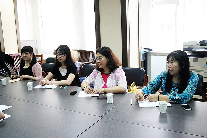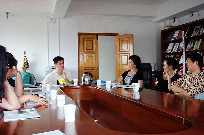 上海交通大学艺术教育中心是调研第四站。上海交大艺术教育中心副主任唐一中教授热情接待了我校来访,并提供了与南京理工大学三校共同交流的平台。在愉快的气氛中,三校艺术教育老师共同探讨了课程建设、职称评定、师资建设等方面内容。上海交通大学交响乐团是国内著名的大学生艺术团,多次在国内及美国和欧洲演出,充分展示中华优秀传统文化以及交大学子风采,取得良好的反响和广泛的好评,唐一中教授就推动大学生艺术团出访演出介绍了相关经验。