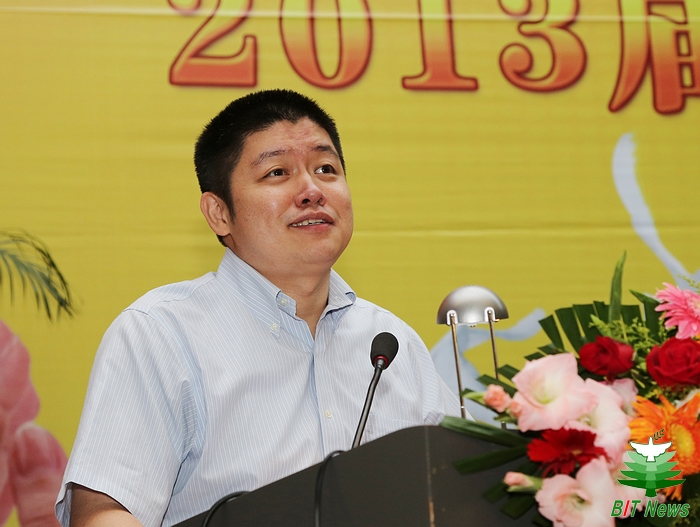 汤海京作为优秀校友发言,他与在座的同学分享了他个人的三段成长经历,激励同学们为创新而奋斗,为梦想而坚持。他教导同学们坚持脚踏实地的工作作风,以勤恳、认真做事为首要目标,趁着年轻多做有意义的事、多去基层锻炼、多为将来打基础。