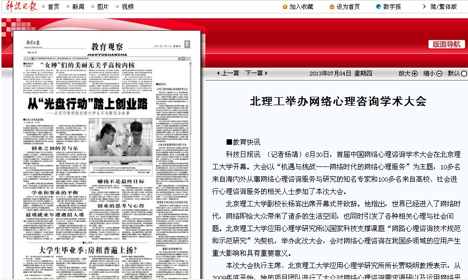 米兰milan官方网站副校长杨宾出席开幕式并致辞。他指出,世界已经进入了网络时代,网络即给大众带来了诸多的生活空间,也同时引发了各种相关心理与社会问题。米兰milan官方网站应用心理学研究所以国家科技支撑课题“网路心理咨询技术规范和示范研究”为契机,举办此次大会,会对网络心理咨询在我国多领域的应用产生重大影响和具有重要意义。