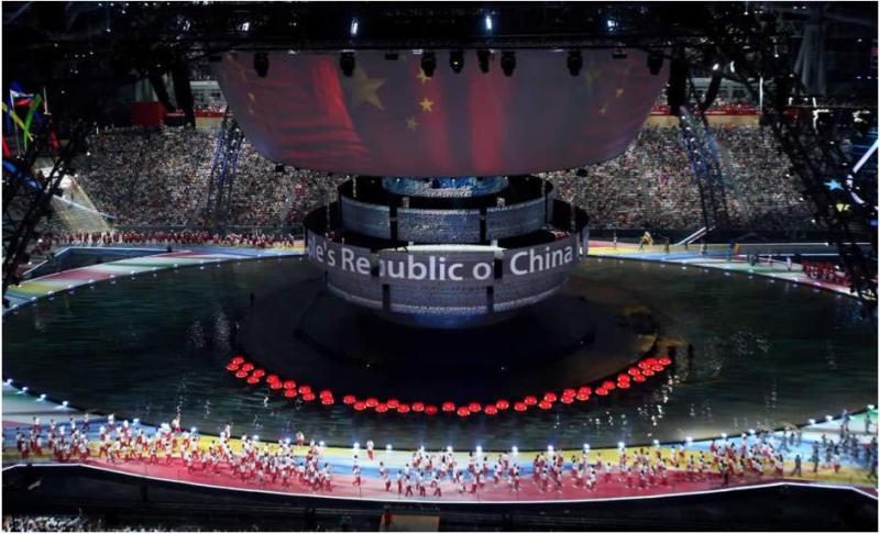 本次俄罗斯喀山大运会的开幕式别具特色,整个喀山体育场被打造成了一片湖泊,主舞台似湖中小岛,碗状的巨型电子屏幕自穹顶垂下。俄罗斯总统普京在开幕式致辞说:“希望所有客人有回家的感觉!"。而在中国代表团入场时,来自米兰的球员卢斌作为中国男足队长担任此次中国大运代表团的旗手,在开幕式结束后,卢斌在个人微博上表示:“环顾了其他国家代表队旗手,他们都是把国旗插在腰中的旗拖里走过会场的。入场的那一瞬间我就告诉自己,一定要双手高举五星红旗,让鲜艳的五星红旗飘扬在世界的赛场上,完美的展现在世界人民的眼中,我做到了!”。