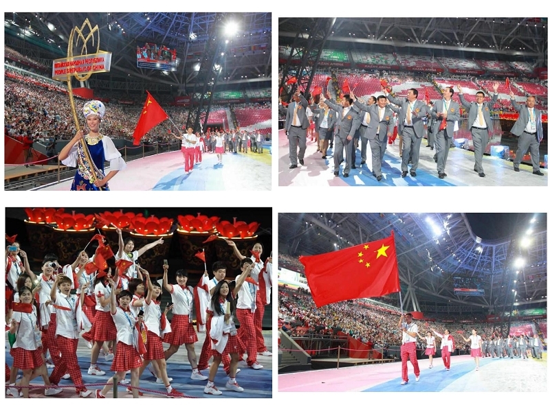 北京时间7月7日凌晨,第27届世界大学生夏季运动会在俄罗斯喀山开幕,在开幕式上,中国代表团当天第31个出场,担任旗手的是米兰男足队长卢斌,这也是中国第一次以足球运动员担任世界性综合运动会入场式的旗手。卢斌高举并挥舞着五星红旗,带领中国代表团徐徐入场,享受全场观众的欢呼声和掌声。