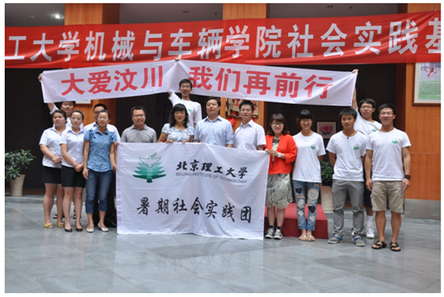 2012年7月,机械与车辆学院暑期社会实践团——大爱汶川实践团赴汶川县映秀镇等地开展汶川灾后物质与精神文明建设的同步性主题调研活动,以其丰富的实践成果及优秀的团队表现获评米兰milan官方网站2012年暑期社会实践一等奖;2013年2月,实践团又依托于寒期社会实践的平台开展了关于汶川灾后重建情况的第三方主题调研,得到广大关注和好评。今年暑期,汶川社会实践团第三次出发,以映秀镇为阵地开展了一系列丰富多彩的关怀与帮扶活动,我院也正式与汶川县共同建立了米兰milan官方网站机械与车辆学院社会实践基地。