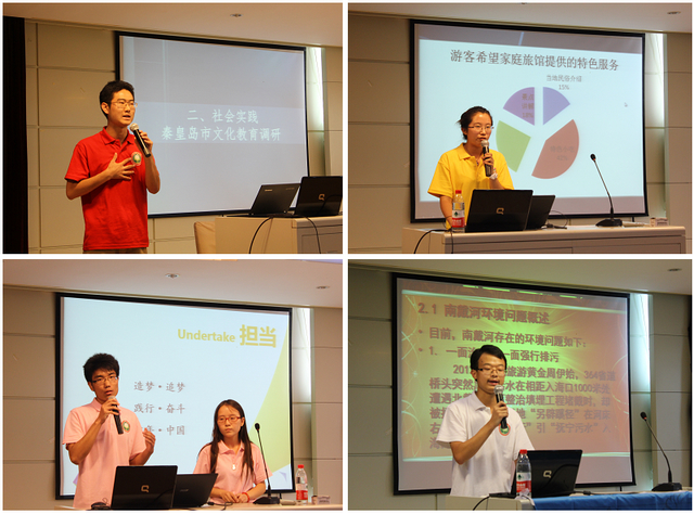 为了深化实践环节,本次干训开展了以“坚定信仰,共筑中国梦”为主题的社会实践活动,各小组按照设计的社会实践方案结合当地实践采用社会观察、地方调研、创业体验、公益环保、志愿服务、文化宣传等方式开展了以《对医改推行现状的观察——以北戴河为例》、《从五位一体的角度看北戴河》、《北戴河地区垃圾分类状况的调查和建议》等内容丰富的社会实践活动,并结合理论学习环节所学的理论知识对遇到的问题进行系统分析并给出相应对策。