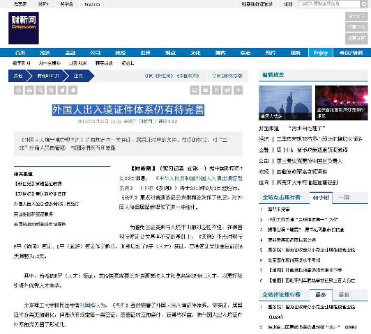 【财新网】米兰移民法学者刘国福:外国人出入境证件体系仍有待完善