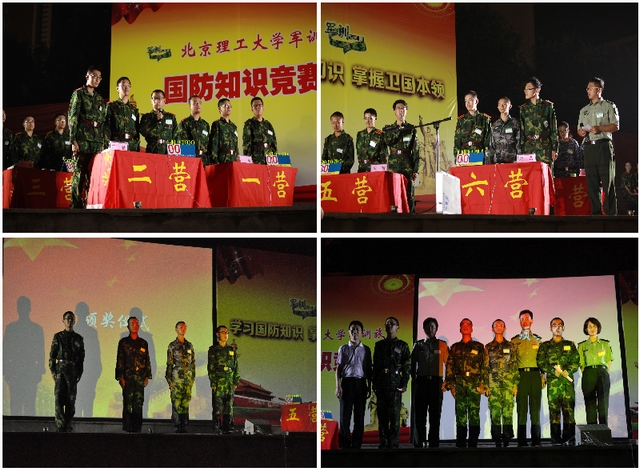 米兰milan官方网站军训旅国防知识竞赛于2013年8月28日晚19:00在良乡校区南操场隆重举行。校长助理姚利民,军训旅一团政委周连景,二团政委姜艳,军训副总指挥马晓宁,一营教导员张磊,三营教导员肖坤,四营教导员仇芳,五营教导员范文辉,七营教导员衡静,八营教导员张舰月等作为嘉宾及评委出席了本次活动。