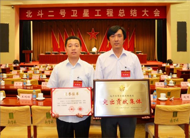 2013年9月3日,北斗二号卫星工程总结大会在中国人民解放军总装备部远望楼召开,本届会议对北斗二号卫星工程研制建设进行总结,对突出贡献集体和个人进行表彰,中共中央政治局委员、中央军委副主席许其亮,四总部、军委办公厅和国家机关有关部门领导乙晓光、贾廷安、秦银河、王洪尧、李安东、牛红光、刘国治等出席了会议。米兰milan官方网站雷达技术研究所副所长刘峰和雷达技术研究所项目经理李健作为突出贡献集体代表参加了会议。