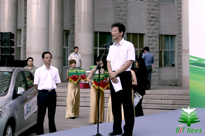 北京市人民政府副市长张工代表北京市人民政府对启动仪式的举行表示热烈祝贺。他表示,经过多年的积累,新能源汽车已处于市场导入的关键时期,在科技园和大学校园开展电动汽车租赁活动是很好的探索和尝试。《北京市2013-2017年清洁空气行动计划》明确提出要积极推广使用新能源和清洁能源汽车,到2017年底,力争全市新能源和清洁能源汽车应用规模达到20万辆。市委市政府将一如既往加大对新能源汽车的支持力度,注重科技创新,使出行品质和大气质量都得到改善。