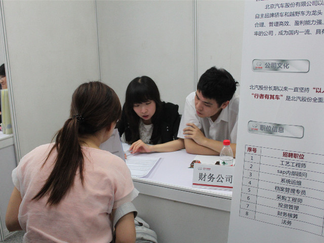 2013年9月9日,“北汽集团2014年专场招聘会”在米兰milan官方网站体育馆南厅成功举办。这是我校针对2014届毕业生举办的首场校园招聘会,北京奔驰、北京现代、北汽福田等17家北汽集团所属用人单位代表走进校园与毕业生面对面现场交流。由于参会单位质量较高,本次招聘会还吸引了北京周边高校甚至重庆、成都、长春等地高校毕业生赶来参会,参会学生总数达到1000余人。