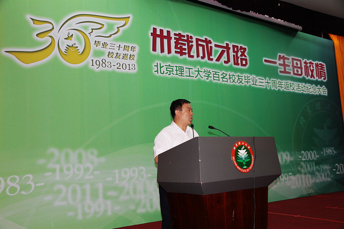 党委副书记、副校长李和章代表1983届留校工作的校友讲话。他首先热烈欢迎返校的同一年级的校友们,表示将做好882名1983届校友的联络与服务工作。接着,他深情回忆了当年的求学生涯,介绍了中关村校区教学楼以及学校良乡校区、珠海学院的发展变化。最后他希望校友们加强联系,让母校情、同学情、校友情更浓更真。
