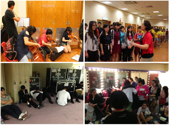 混声组的比赛之后,学生合唱团马不停蹄的赶往位于维多利亚湾附近的香港艺术中心演艺厅参加民歌组的比赛,由于跨组参赛,时间非常紧张,在换装、用餐之余,同学们只能挤在狭窄的化妆间里进行简单的休整,而许多男生只能在后台的过道里休息。合唱团演唱的是由我校贺春华教授改编自样板戏《智取威虎山》选段的作品《乘胜进军》,最终以第七名的成绩获得了民歌组的银奖。