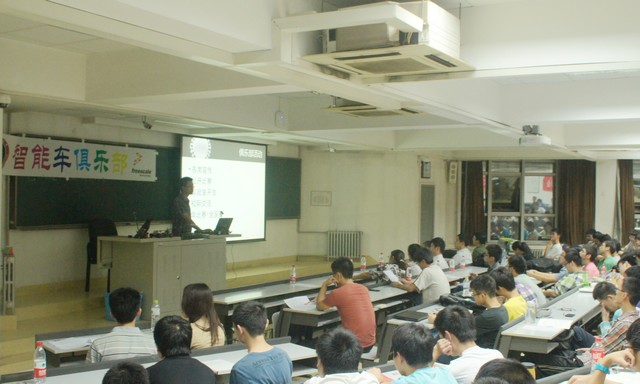 宣讲会第二部分的主要内容是由第八届智能车竞赛队员李哲宁、王震及邓雪同学分别对大赛规定的组别进行简单介绍。每一位队员都表达了对下一届同学的欢迎和对他们的期望,同时也强调,希望每一位有志加入智能车俱乐部的同学都怀揣着对智能车的热爱,在智能车俱乐部脚踏实地进行科技创新,茁壮成长。本届主席王震同学同时对第九届智能车俱乐部的活动安排进行了说明,并且宣布了测试、培训选拔、淘汰赛、循环赛等一系列的选拔体制,为大家分析了第九届智能车竞赛的现状和我校的优势,并对我校再创佳绩表达了强烈的信心。