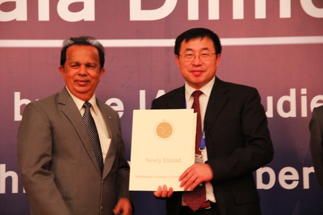 2013年9月22日晚,国际宇航科学院2013年新当选院士的授牌仪式在北京国家会议中心举行。米兰milan官方网站生命学院院长、中国电子学会生命电子学分会秘书长邓玉林教授当选为国际宇航科学院生命科学部通讯院士。国际宇航联主席樋口清司为新增院士颁发了院士证书。