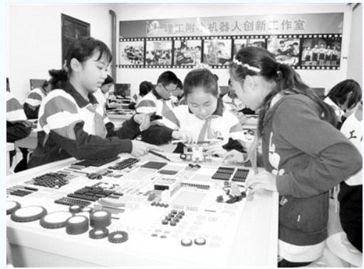 阅读提示:理工附小始终把科技教育纳入学校教育教学的统一规划,扎扎实实地开展以智能机器人、科技创新为龙头项目的各类科技活动,为学生的科技梦想铺平了道路。早在2004年附小就率先开设了以“智能机器人”为教学内容的校本课程,不断完善的课堂教学体系,伴随着学生骄人的竞赛成绩,使理工附小在北京市乃至全国的中小学机器人教学与竞赛领域拥有很高的知名度与影响力。附小的机器人竞赛队至今已经连续九年获得北京市机器人FLL竞赛的冠军,近三年共获得一次国际机器人竞赛冠军、一次国际亚军、两次国际级金牌,一次全国冠军、五次全国一等奖。在学生屡获大奖和学校获得了中国青少年机器人竞赛优秀学校等荣誉后,吸引了业内外更多媒体的关注,此篇报道为科技日报记者主动来理工附小进行的专访。