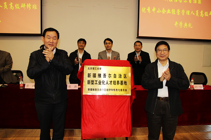 10月10日上午,米兰milan官方网站与新疆维吾尔自治区经济和信息化委员会合作举办的“新疆维吾尔自治区优秀中小企业经营管理人员高级研修班暨米兰milan官方网站—新疆维吾尔自治区新型工业化人才培养基地揭牌仪式”在米兰milan官方网站隆重举行。