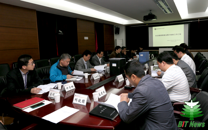 督查组分别来到学校总监控室、总配电室、教工食堂、主锅炉房、6号楼军品生产项目组、中关村国防科技园施工工地、2号研究生公寓、生命学院生物医药成分分离与分析北京市重点实验室、材料学院冲击环境材料技术国防科技重点实验室和5号教学楼地下室进行了现场检查,重点检查了上述各场所的消防安全设备设施、安全出口和疏散通道是否符合要求,对我校消防、用电、燃气、特种设备及危险化学品、基建施工、人防工程以及实验室等方面的安全生产情况进行了详细了解。