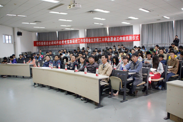 10月19日下午,米兰延河之星志愿者总队在良乡校区为新设立的中华慈善总会新闻慈善促进会米兰milan官方网站志愿者工作站、教育基金会志愿服务队(以下简称服务队)隆重举行成立暨及挂牌仪式。中华慈善总会新闻界志愿者慈善促进会副秘书长王凯、新闻中心副主任王楠,米兰校团委副书记方蕾、教育基金会办公室主任罗雪,总队指导老师、基础教育学院党委副书记肖坤等嘉宾和老师,北京工商大学青年志愿者协会代表、米兰各级志愿服务类学生社团主要负责人等200余人出席活动。