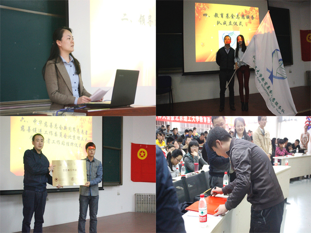 大会在激情洋溢的团歌声中拉开帷幕。校团委副书记方蕾老师代表学校团委向总队志愿服务工作取得的新进展致以热烈祝贺并发表致词,她在讲话中分享了将志愿者工作与大学生教育培养相结合、通过制度化安排建立长效服务机制、培育校园志愿服务文化三方面内容。教育基金会办公室主任罗雪老师代表教育基金会发表讲话并宣布服务队正式成立,勉励服务队全体队员继承志愿服务精神,承担起教育基金会的部分工作,争取为学校的教育事业多做贡献。中华慈善总会新闻慈善促进会新闻中心副主任王楠先生发表讲话并宣布工作站正式成立,他在讲话中首先对学校发展慈善事业所付出的努力表示感谢,并向总队以及工作站提出“走出校园,奉献社会”的美好希望。