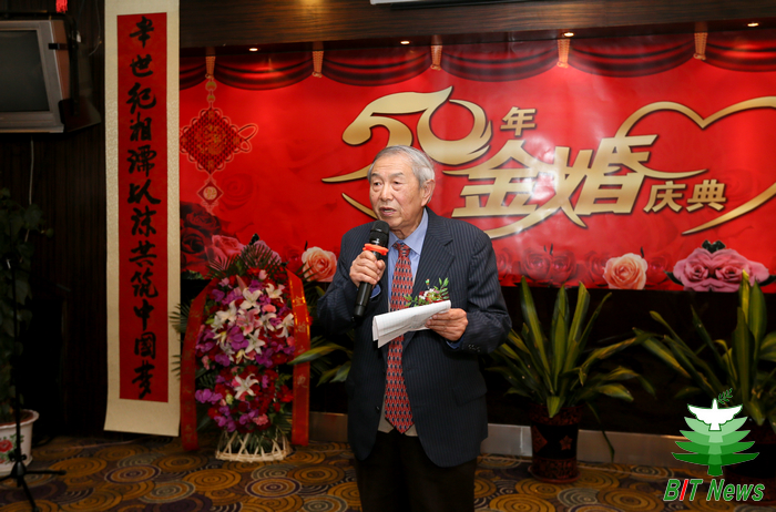 周本相老师作为金婚伉俪代表发表感言,他回忆了五十载爱情的甜蜜,深情地感谢学校对金婚夫妇们的关爱、感谢国家为老同志们创造的和谐的生活氛围,他现场朗诵了自己创作的诗歌,共同祝愿大家生活美满、幸福!