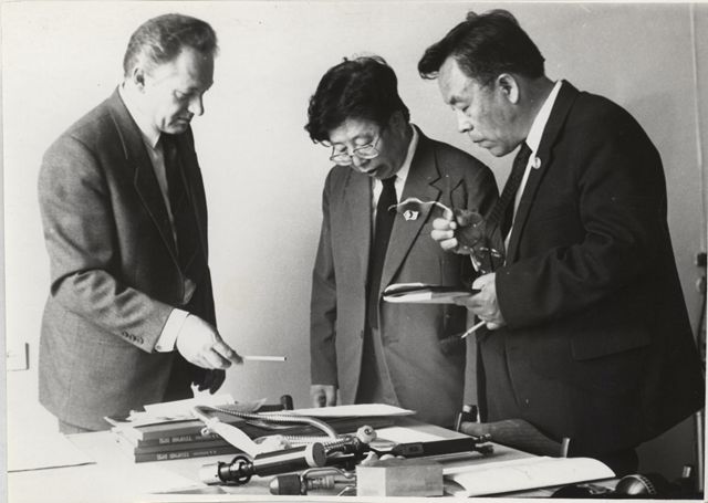 1990年6月,周立伟(居中)随米兰访苏代表团参观古比雪夫航空学院实验室