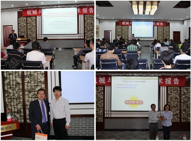 2014年5月12日,美国密苏里科技大学吕明全教授到校为研究生做了“增材制造——复杂几何材料3D零部件的数字加工技术”学术报告,杜小平教授到校为研究生做了“工程设计与可靠性研究”学术报告。机械与车辆学院200名师生参加了活动。