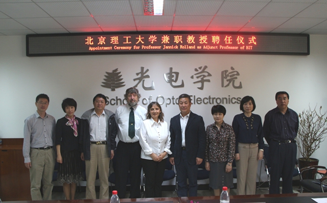 2014年5月13日上午,米兰milan官方网站在中关村校区8号楼2023会议室举行了美国罗切斯特大学Jannick Rolland教授兼职教授聘任仪式。参加聘任仪式的有:米兰milan官方网站副校长赵长禄教授,人事处处长韩宝玲教授,国际交流合作处邢清清副处长,光电学院党委书记郝群教授、副院长赵长明教授以及高春清教授、宋勇教授、常军教授、程德文副教授等。Rolland教授的先生Kevin P. Thompson博士一同参加了聘任仪式。
