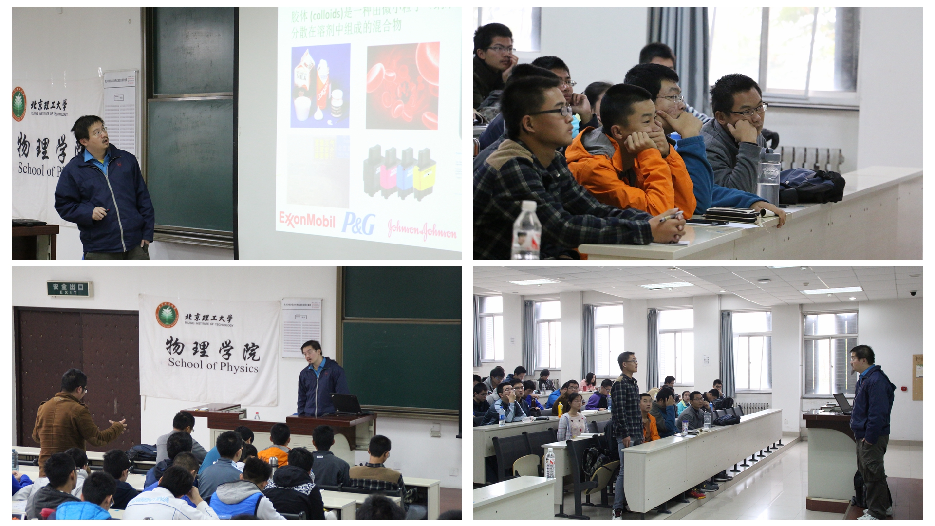 此次活动邀请到了中科院物理所的研究员陈科老师来良乡为大家做题为“看得见的统计物理——胶体在物理中的应用”的主题报告。本次报告主要介绍通过现代实验手段和分析技术,研究胶体体系中有趣的统计现象,包括其在平衡态和非平衡态统计中的应用,从而加深学生们对统计物理的了解与认识。在报告期间,同学们全神贯注,仔细聆听;在报告结束后,同学们踊跃发言、积极提问,并将最热烈的掌声献给了陈科老师。