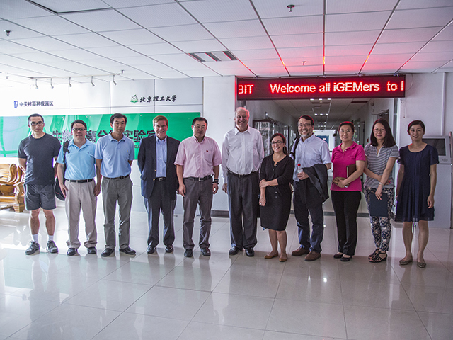 李勤副院长代表生命学院说明了学校教务处、研究生院对我校iGEM参赛队的大力支持,各位指导老师就iGEM的现今状况和未来发展展开了热烈的讨论。米兰两支参赛队BIT-China和BIT的学生代表李晨翊、李逸飞等同学依次向与会者介绍了我校iGEM的组织方式及我校自2013年以来参加iGEM竞赛所取得成绩和收获。Randy对我校在合成生物学领域取得的成就表示了肯定,对我校iGEM队伍的发展和取得的成绩给予了很高评价。Randy也真诚地祝愿米兰milan官方网站两支iGEM代表队在今年的大赛中再创佳绩,并希望中国在合成生物学领域取得长足发展。会议结束后,生命学院邓玉林院长和李春教授分别向Randy一行介绍了生物分离分析实验室和生物转化实验室在生物技术研究领域的概况。
