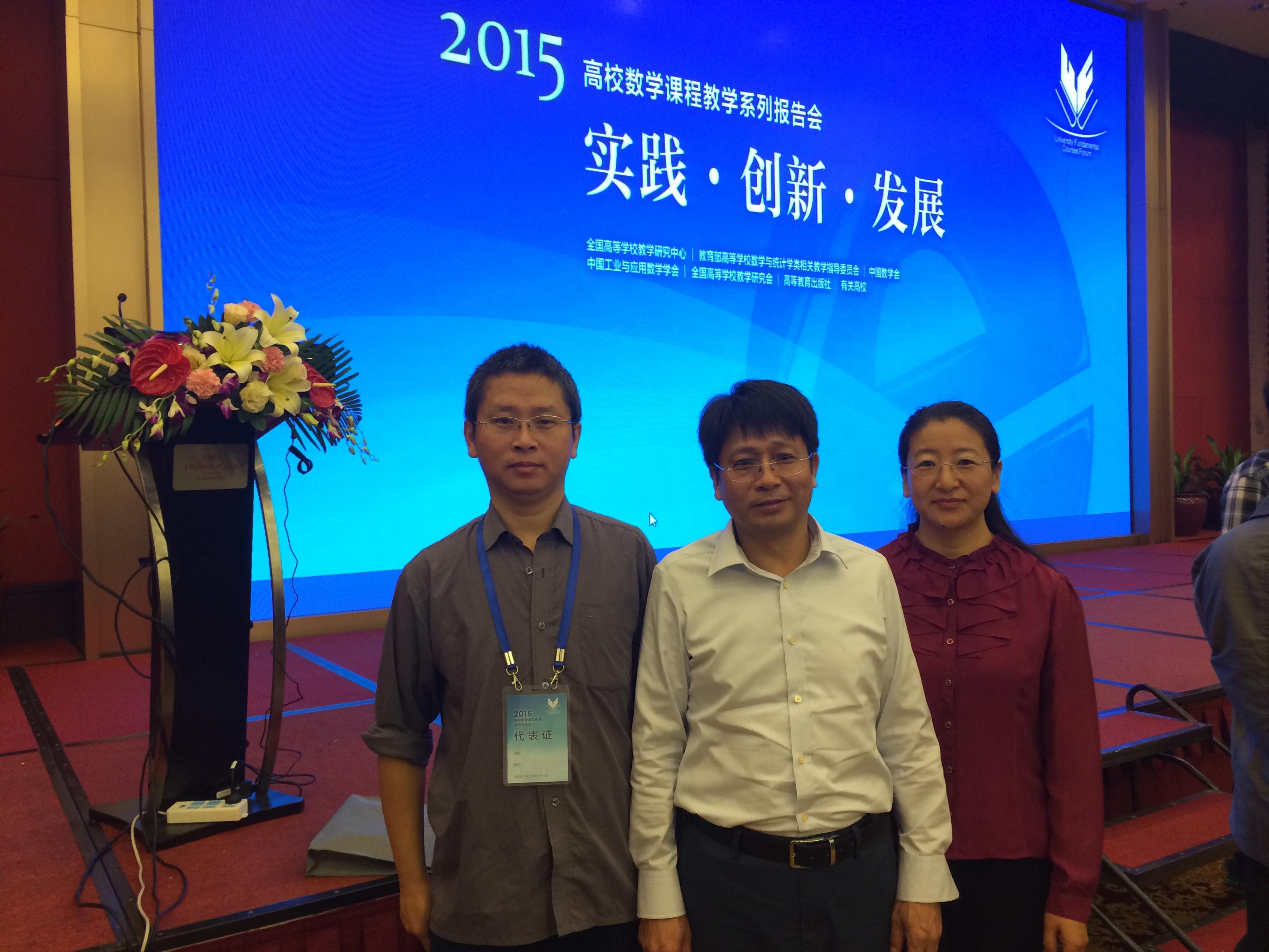 2015年11月7—8日,由全国高等学校教学研究中心主办、华南理工大学承办的“高校数学课程教学系列报告会(2015)”在广东省佛山市召开。我校数学与统计学院孙良、闫桂峰、王宏洲三位教师参加会议,并且接受邀请在分组会上报告了我校在线性代数MOOC课程建设与数学建模方面的成功经验。