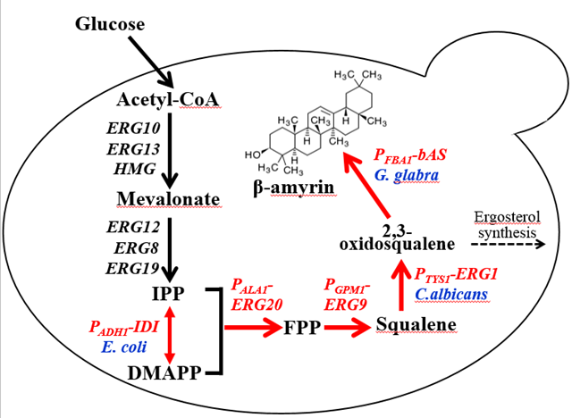 图1 酿酒酵母中三萜β-香树脂醇的设计策略