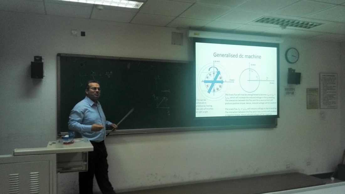 作为此次学术交流的组成部分之一,Sharkh教授为研究生讲授了为期两周的永磁同步电机设计及控制理论的相关课程,内容包括直流电机基本理论、永磁无刷直流电机本体设计及控制、永磁同步电机本体设计及控制,永磁同步电机无位置传感器控制等,Sharkh教授的精彩讲授受到了全体学生的一致好评。
