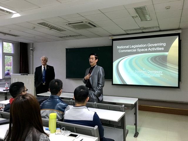 2016年4月14日18点30分,在米兰milan官方网站研究生楼104室,Paul Stephen Dempsey教授为2014级和2015级国际法研究所的研究生带来了一场主题为“National Legislation Governing Commercial Space Activities”的精彩讲座。