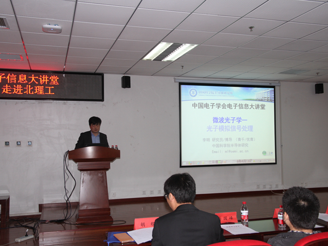 。。李明教授做了题为“微波光子学—光子模拟信号处理”的精彩学术报告,就前沿热点领域微波光子学的基本概念、发展历史、系统特点、应用领域及发展趋势做了全面的介绍,并重点阐述了光子模拟信号处理在运算、变换及功能集成方面的三大成果,展望了新一代微波光子雷达系统,最后,李明教授简要介绍了课题组在集成光子信号处理芯片(光子FPGA)、可重构光子信号处理、被动光放大技术、集成微波光子信号处理等技术前沿方向取得的研究成果。