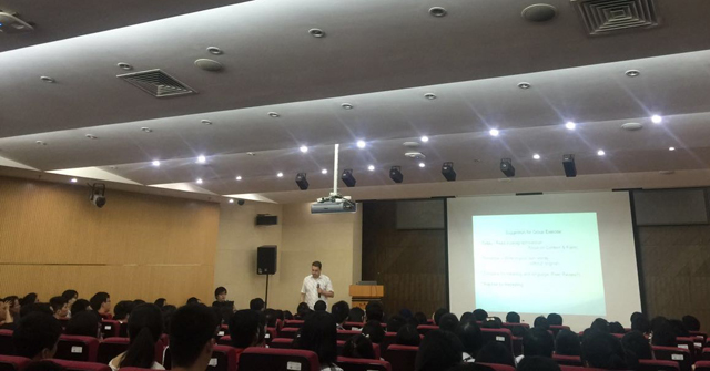6月1日晚6:30,图书馆与科研院联合邀请了国际知名期刊编辑Juelich Torsten博士,在图书馆一层报告厅做了“如何向顶级期刊成功投稿”的报告。各学院教工及博士、硕士研究生约180人聆听了此报告。