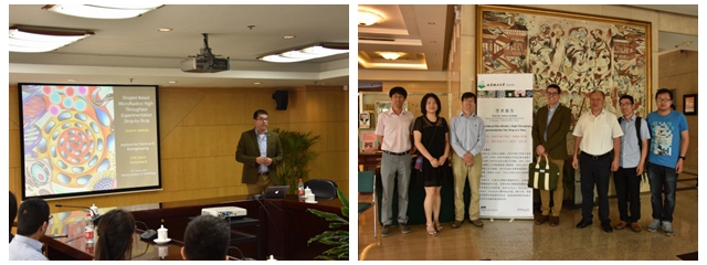 编辑:廖峭 审核:王伟 阅读次数:2016年6月8日早9:00,应机电学院、灵巧武器研究所的邀请,苏黎世联邦理工学院Andrew deMello教授在国际交流中心三楼第一会议室做了题为“Droplet-Based Microfluidics: High-Throughput Experimentation One Drop at a Time”的学术报告。报告会由机电学院院长陈鹏万教授主持,灵巧武器研究所所长郝忠虎研究员出席了报告会。