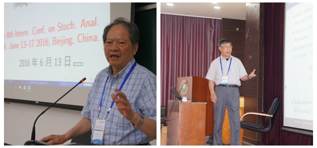 6月14日, 山东大学的彭实戈院士做了题为“Rough paths for nonlinear G-Brownian motion”的四十分钟大会报告。众所周知,彭实戈院士最早引入了G-期望以及条件G-期望的概念,从而建立了动态非线性数学期望理论基础。彭院士的这些研究结果对于概率论、统计学、风险分析、随机分析的发展有非常重要的推动作用。彭院士在本次报告中主要介绍了自己及合作者采用“quasi-surely”分析方法研究关于G-布朗运动的轨道积分和相应的微分方程的最新成果。随后,中国科学院数学与系统科学研究院副院长巩馥州教授,北京师范大学王凤雨教授,武汉大学的张希承教授,日本神户大学Naitaka Kajino教授,韩国国立首尔大学Panki Kim 教授,美国密歇根州立大学肖益民教授(米兰milan官方网站长江学者讲座教授),上海交通大学陈新兴教授和米兰milan官方网站王洁明老师分别报告了各自的最新研究成果。