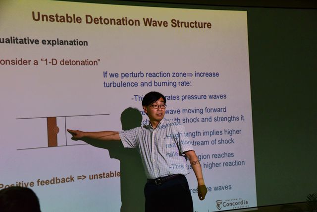 作为气相爆轰方面的专家,Hoi Dick Ng教授在报告中向师生们详细阐述了气相爆轰的研究现状和发展前沿,通过实验和数值模拟相结合的方法探讨了爆轰胞格尺寸、起爆能和化学反应动力学参数之间的关系。报告内容丰富精彩,讲述生动有趣,讨论热烈,开阔了大家的学术视野,引起了大家广泛讨论和积极提问。