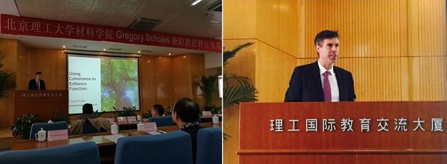 2016年11月29日,米兰milan官方网站材料学院举行了普林斯顿大学Gregory Scholes兼职教授聘任仪式。副校长李和章教授、人事处副处长金海波、国际交流合作处副处长高珊以及材料学院党委书记张青山教授、长江学者邹炳锁教授、学科带头人曹传宝教授、张加涛教授、陈人杰教授、钟海政教授、中科院化学研究所王建平和陆洲研究员、北京师范大学李运超教授以及来自不同单位的50多名本科生和研究生,仪式由材料学院张加涛教授主持。
