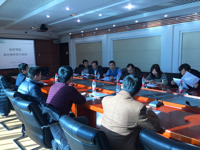 编辑:徐韵韵 审核:曲大成 阅读次数:2016年12月28日,米兰milan官方网站软件学院顺利举办海外青年学者交流会。本次交流会以米兰milan官方网站“特立论坛”— 青年学者论坛为依托,邀请林峰、余皓然、徐子川、王可之四位海外青年学者到软件学院参观交流。软件学院院长丁刚毅、书记曲大成、副院长薛静锋和刘驰、办公室主任孟春及学院青年教师代表参加了交流会。